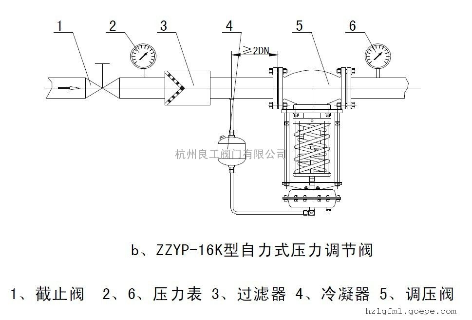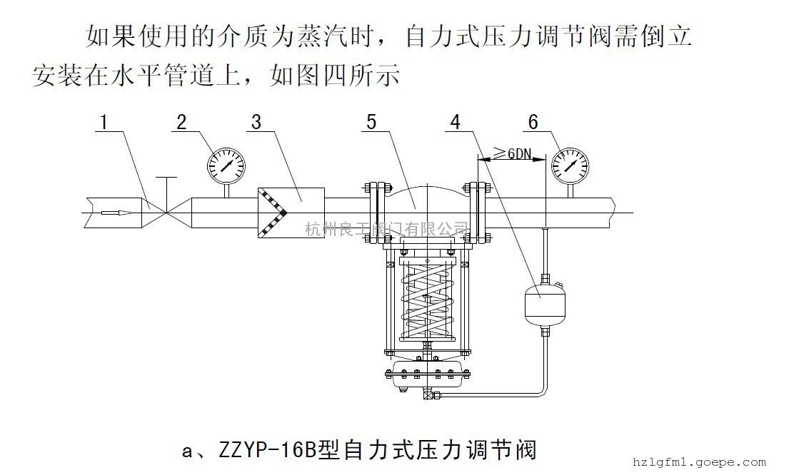 自力式压力调节阀锅炉ZZYP-16BW波纹管平衡型自力式压力调节阀管道中一般应当水平安装。